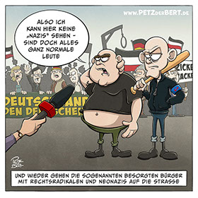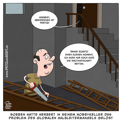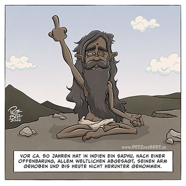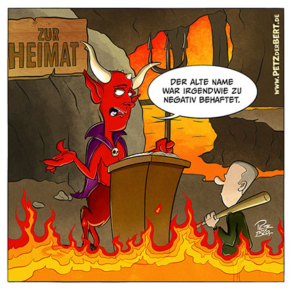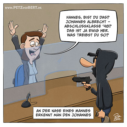 Der selbsternannte Hobby-Cartoonist Patrick Schombert wurde 1982 in Essen geboren, zog dann aber alsbald in die weite Welt, um in Dortmund als Mediengestalter Fuß zu fassen. Seit ca. 2020 veröffentlicht er, unter dem Namen PetzDerBert, seine albernen Cartoons mehr oder weniger regelmäßig in den „sozialen“ Medien, war u.a. im Eulenspiegel vertreten und gehörte beim Deutschen Karikaturenpreis 2021 zu den drei Nominierten für den Preis zum Newcomer des Jahres. (Ein herzlicher Glückwunsch geht an dieser Stelle an Annika Frank!). Üblicherweise spricht er von sich nur sehr selten in der dritten Person.